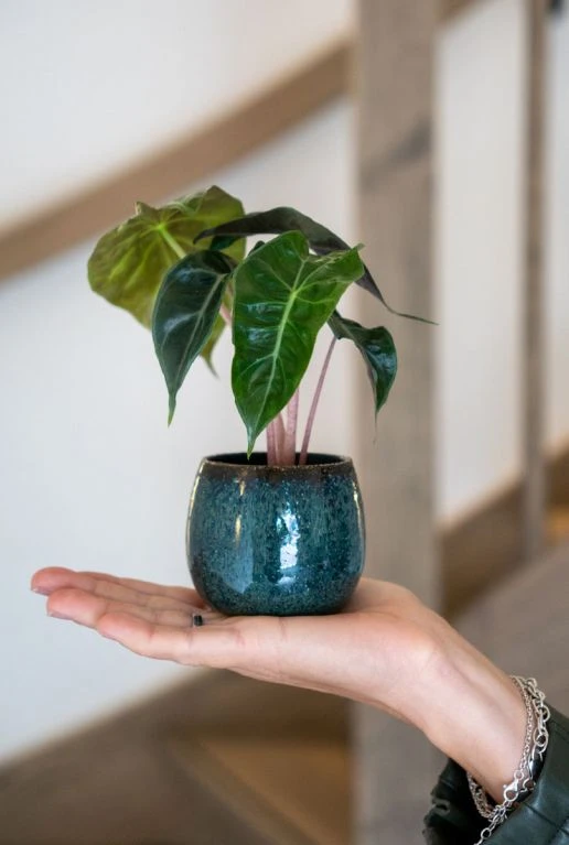 Dit Alocasia Pink Dragon stekje heeft veel unieke eigenschappen. De bladeren zijn donkergroen van kleur, over de bladeren lopen lichtgroene nerven en ze zijn fluweelzacht. Daarnaast groeien deze bladeren op roze stelen, dit maakt dit plantje een echte eyecatcher.