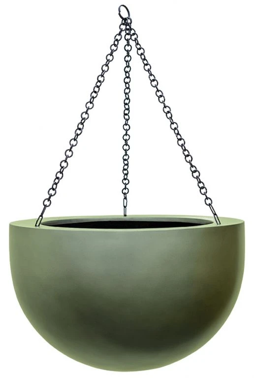 Deze mooie grote hangbloempot is groen van kleur en ideaal voor hangplanten.