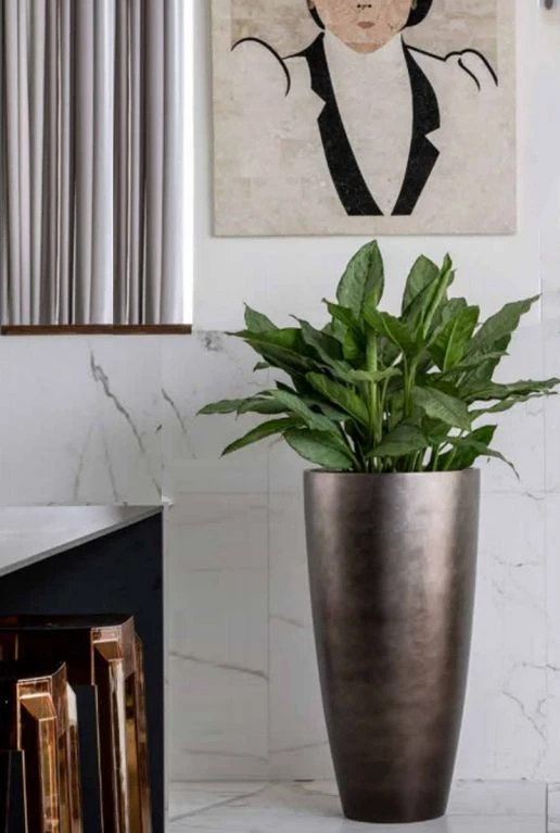 Deze mooie lichtgewicht plantenbak is gemaakt van Polyresin. Hij geeft een strakke en luxe uitstraling aan elk interieur. De plantenbak is voorzien van een inzetbak, zodat niet de hele pot gevuld hoeft te worden met substraat.