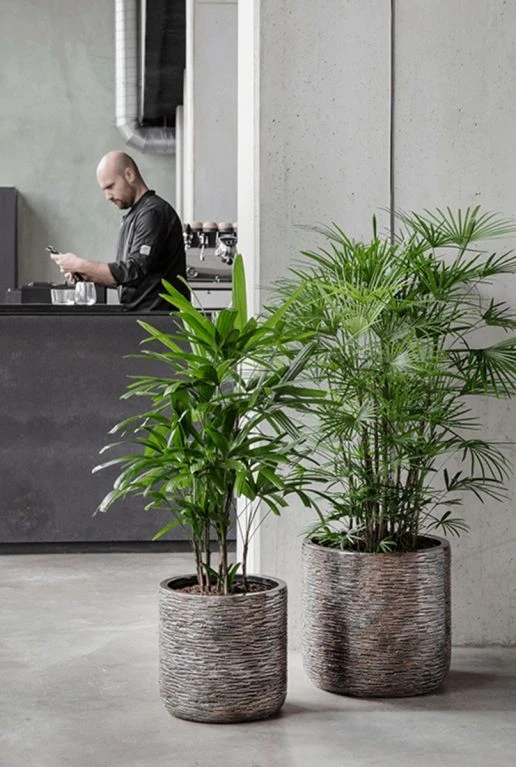 Deze mooie luxe potten zijn brons van kleur en hebben een klein ribbel patroon. Ze zijn gemaakt van een glasvezelversterkt kunststof, maar zien er luxe en robuust uit. Dit materiaal is erg sterk maar tegelijkertijd licht van gewicht. Combineer deze bronzen pot met een groene kamerplant en maak hiervan een eyecatcher in het interieur.