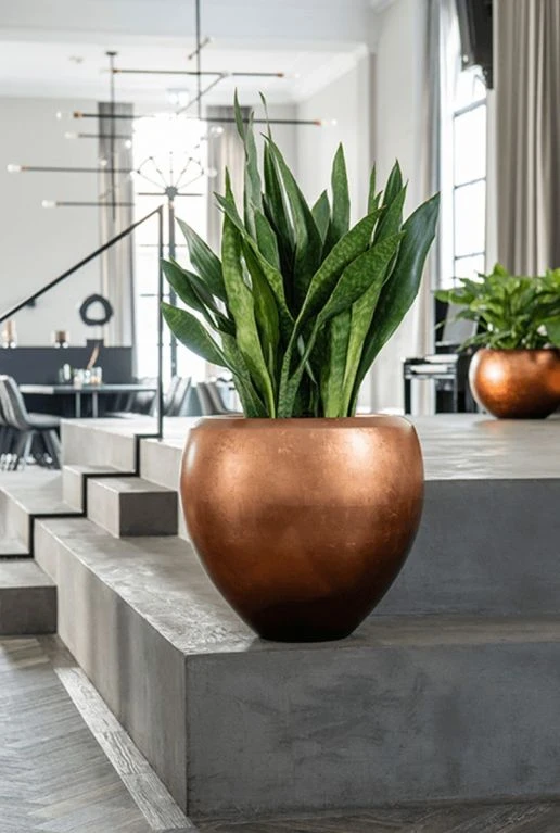 Deze plantenbak is van het merk Baq en heeft een chique en elegante uitstraling. De plantenbakken zijn volledig bedekt met bladzilver en vervolgens afgewerkt met een transparant koperkleurige laklaag. De plantenbakken worden geleverd inclusief een bijpassende waterdichte binnenbak en zijn licht van gewicht. Kies een mooie plant uit en geef deze pot een mooi plekje in het interieur.