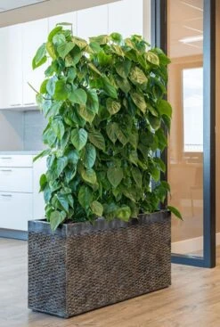 Deze plantenbakken van het merk Baq zijn gemaakt van Polystone, een mengsel van kunststof en gemalen kalksteen. Dit materiaal heeft dezelfde uiterlijke kenmerken als natuursteen, maar is verrassend licht van gewicht. Deze potten zijn beige wit van kleur en voorzien van een waterdichte inzetbak.