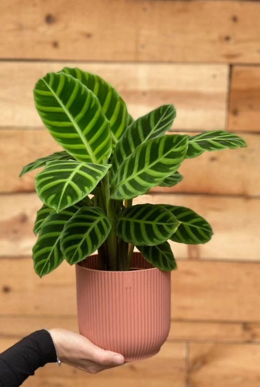 De Calathea Zebrina heeft prachtige fris groene bladeren. De bladeren hebben een streepmotief. Deze kamerplant drinkt veel water, laat de grond niet droog worden! Maak snel een plekje in jouw interieur vrij voor de prachtige Calathea Zebrina.