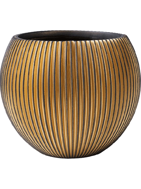 De Capi Nature Groove Pot in een prachtige gouden kleur is een nieuwe toevoeging aan ons Capi assortiment bloempotten. Deze bloempot kenmerkt zich vanwege zijn stoere strepen aan de buitenkant. De pot is gemaakt van kunststof waardoor deze licht van gewicht is.