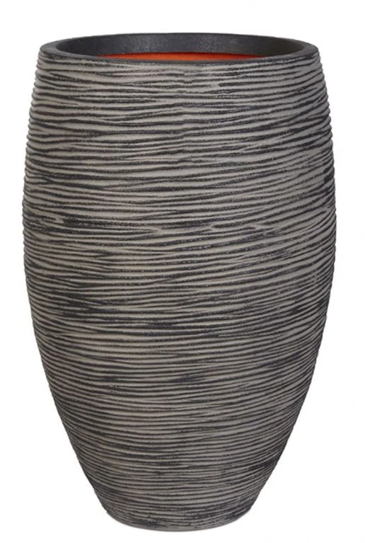 Deze hoge vaas vormige plantenbak heeft een klein rib motiefje wat zorgt voor een robuust uiterlijk. Tevens zijn deze potten waterdicht en kunnen ze tegen een stootje. Voor binnen en buiten te gebruiken.