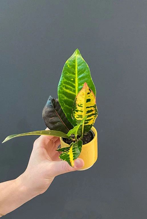 Dit Croton Petra stekje is een zusje van de Croton Iceton en fleurt je kamer geheid op met haar kleurijke bladeren. De Croton staat graag op een lichte plek. Combineer de kamerplant met een van onze bloempotten.Â