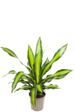 Mooie Dracaena met lange bladeren in de kleur groen met geel. Plaats deze kamerplant op een plekje in de schaduw of halfschaduw.