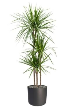 Deze mooie Dracaena heeft drie stammen met daarop volle koppen met bladeren. Hij wordt kant en klaar geleverd in een plantenpot van Elho.Â