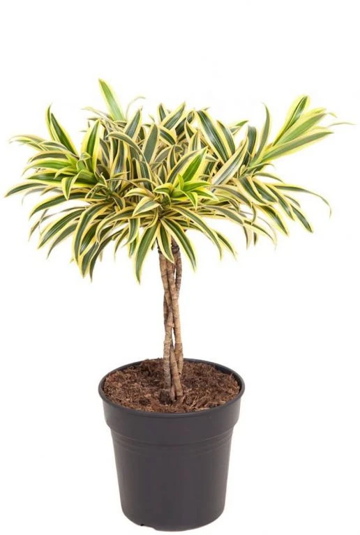 Deze Dracaena Song of India heeft een gevlochten stengel en geelgroene bladeren. De prachtige kamerplant staat graag op een plekje in de schaduw. Vanwege haar opvallende verschijning zal ze extra opvallen in je interieur.