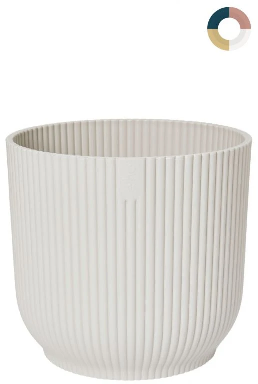 Deze leuke witte kunststof bloempot is van het merk Elho. Deze plantenbakken worden duurzaam geproduceerd met behulp van 100% schone windenergie. De nieuwe serie Vibes Fold heeft ronde vormen en een gestreept patroon en laat je kamerplant perfect uitkomen. Voeg jij deze potten toe aan je interieur?