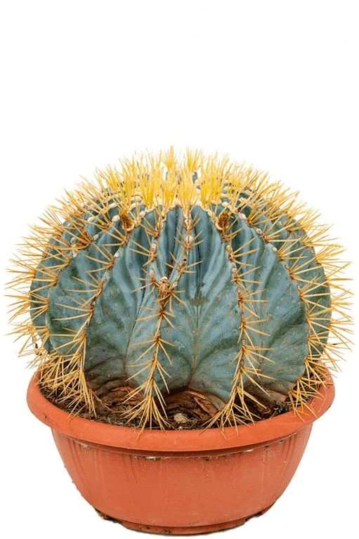 De Ferocactus Glaucescens is een cactus die bolvormig is. Hij is groen grijs van kleur en heeft dikke grote stekels. Bovendien is dit een makkelijke kamerplant.