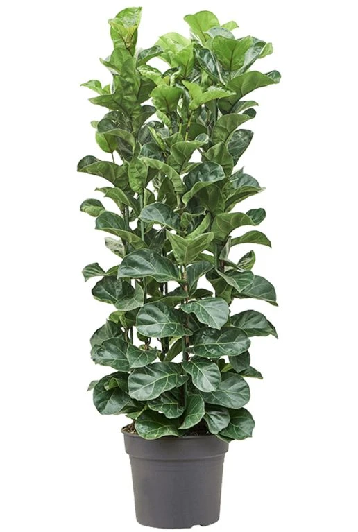 Deze prachtige groene grote kamerplant heeft de naam Ficus Lyrata Bambino. Hij heeft veel weg van de Ficus Lyrata, maar net wat kleinere bladeren vandaar de naam ‘Bambino’.