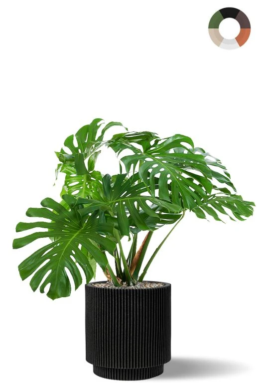Deze grote Monstera is een van de populairste kamerplanten en heeft grote groene bladeren met gaten. De combinatie is kant en klaar en wordt zo bij jou in de woonkamer geleverd. Welke kleur pot kies jij?Â
