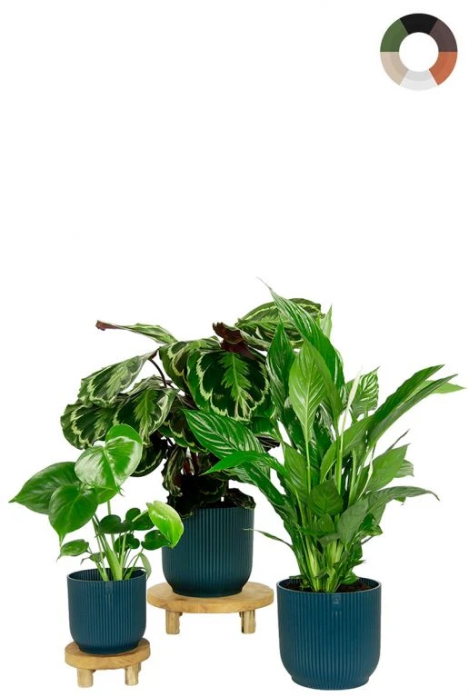 Deze nieuwe hippe Elho potjes staan geweldig in elk interieur. Ze worden duurzaam geproduceerd met behulp van 100% schone windenergie. De Calathea, Monstera en de Spathiphyllum staan super leuk in deze plantenpotten. Welke kleur kies jij?