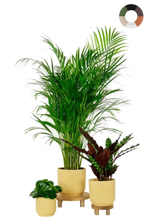 Deze nieuwe hippe Elho potjes staan geweldig in elk interieur. Ze worden duurzaam geproduceerd met behulp van 100% schone windenergie. De Areca, Calathea en de Peperomia staan super leuk in deze plantenpotten. Welke kleur kies jij?