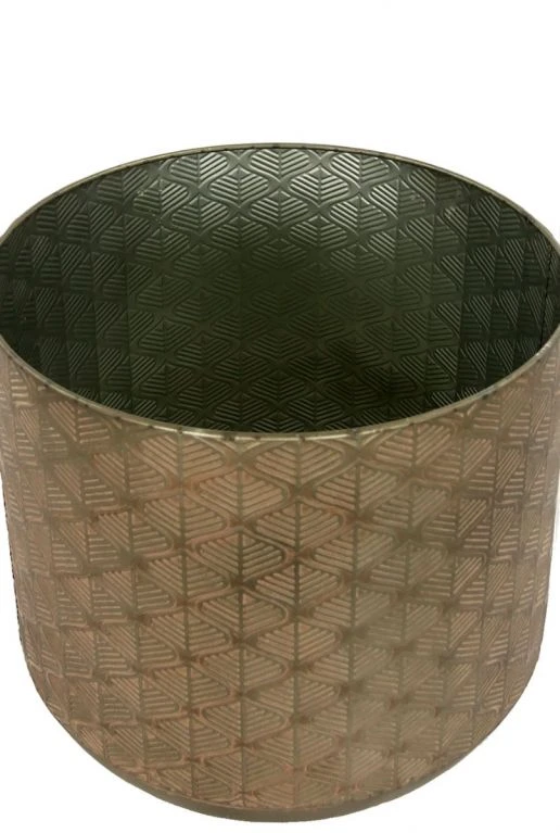 Deze Jort plantenbak is gemaakt van metalen platen die met de hand gevormd zijn tot een pot. De kleur is het beste te omschrijven als taupe brons. Door het materiaal geven ze een industriële en stoere look aan het interieur. Het motief in deze potten is elegant en sfeervol en combineert uitstekend met een groene kamerplant.