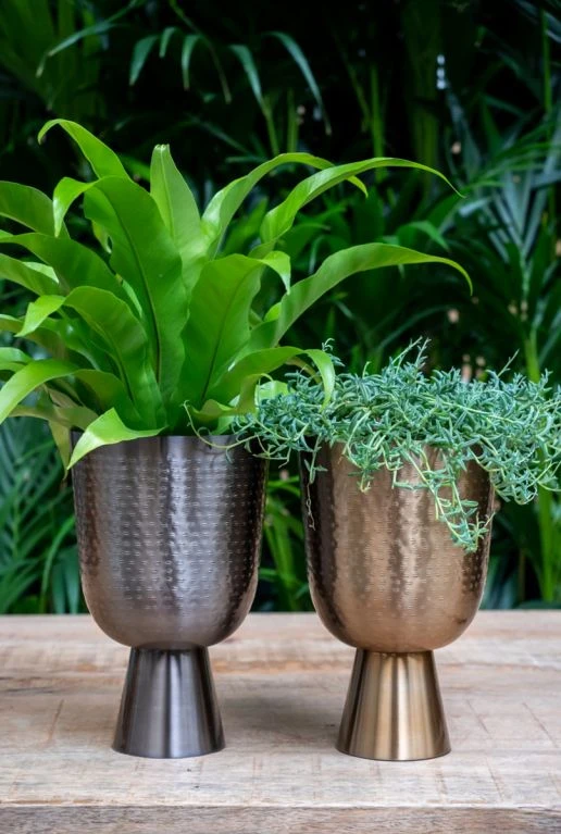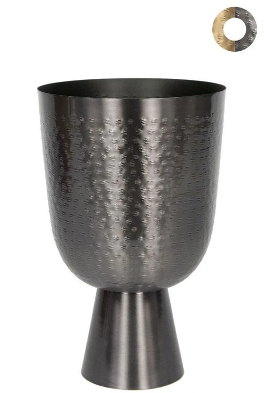 De Lauren pot is een mooie hoge bloempot, verkrijgbaar in de kleur zilver en goud. De bloempot is gemaakt van metaal met een subtiel werkje aan de buitenkant. Geef jouw interieur een extra ’touch’ met deze chique pot.